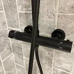 At the apartment, a separate toilet and a shower have been provided to enhance your comfort. Furthermore, the bathroom boasts a hair dryer and towels.